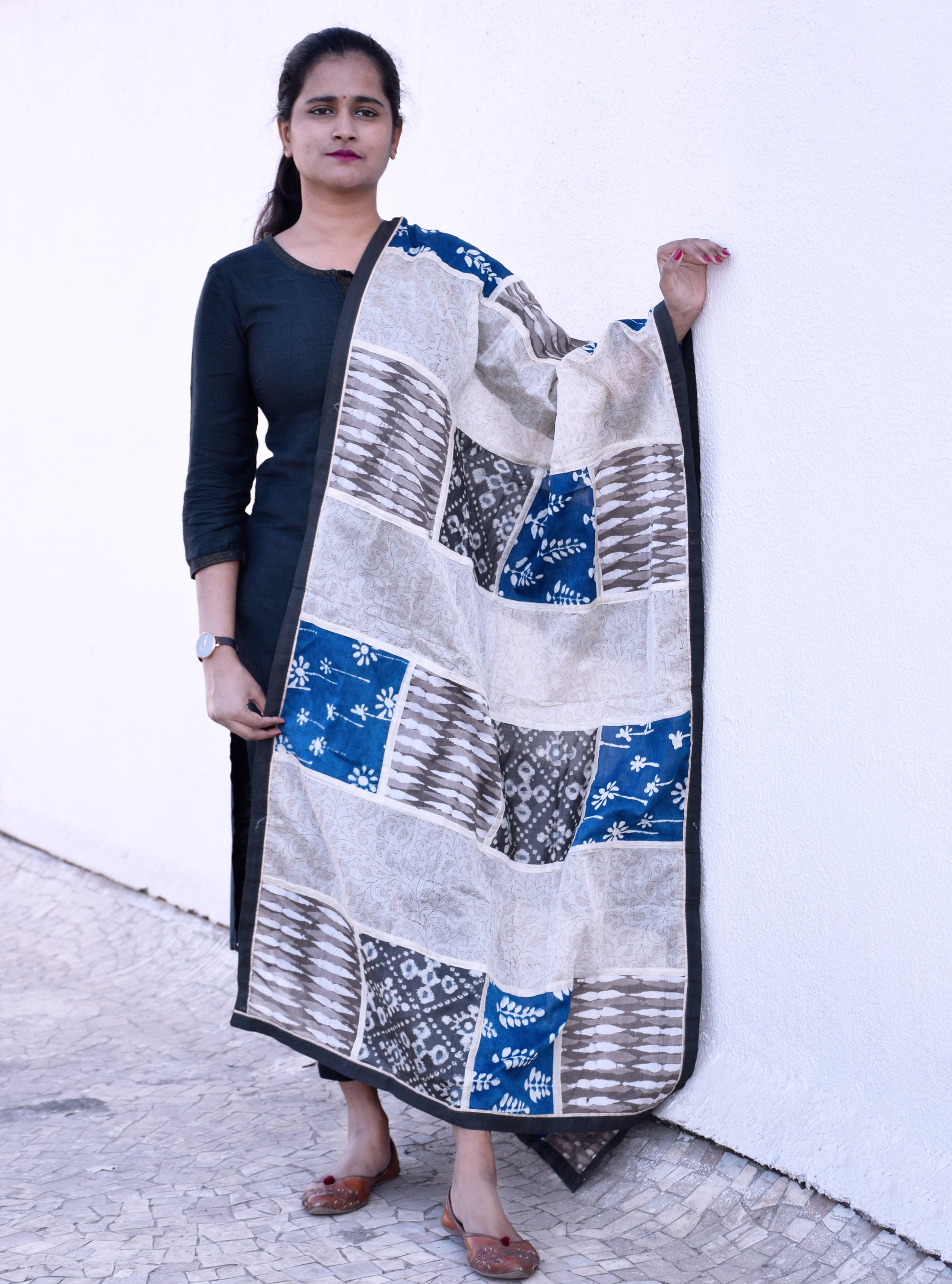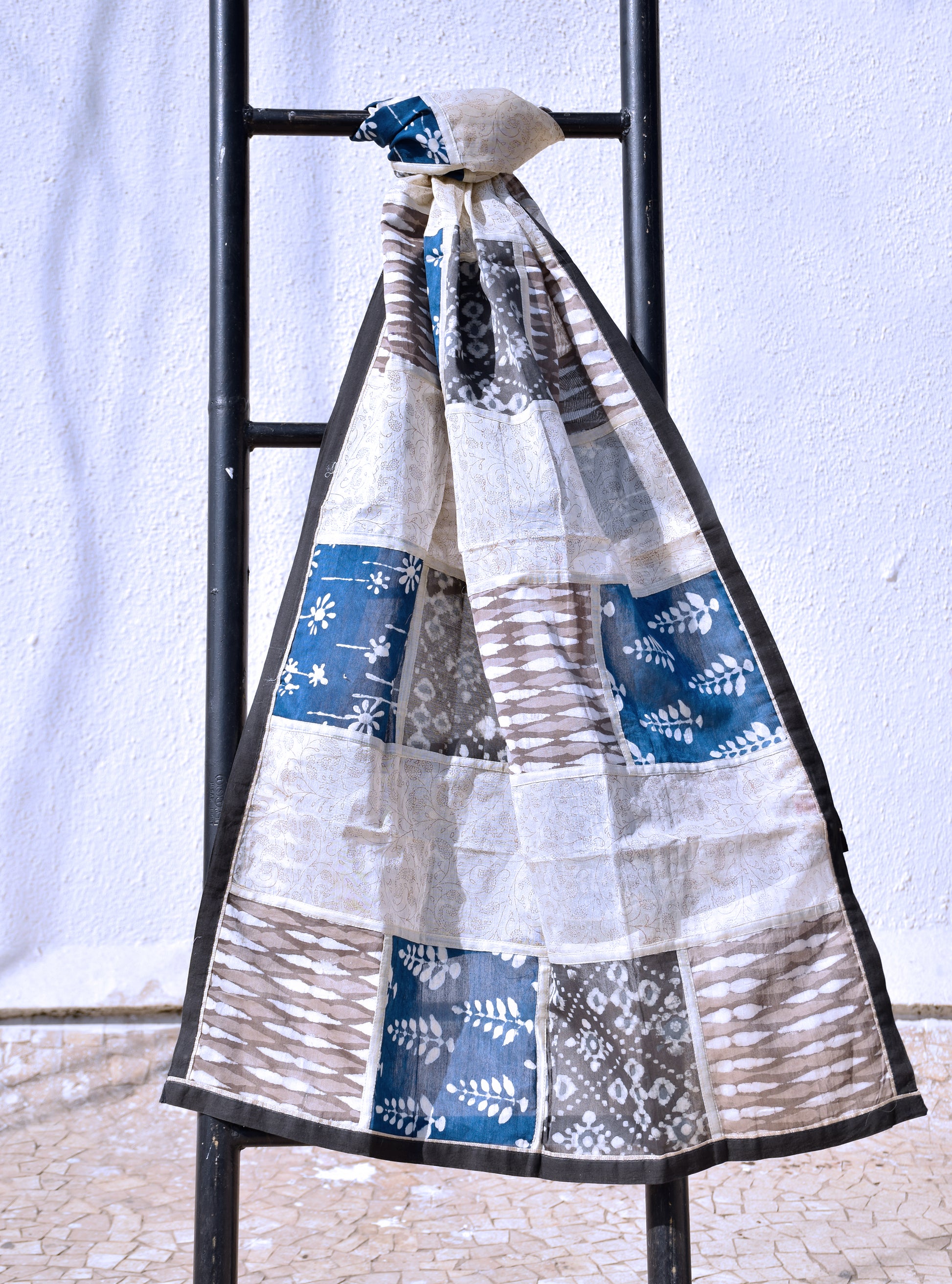 Beige Patch-work Dabu print Cotton-Silk Dupatta