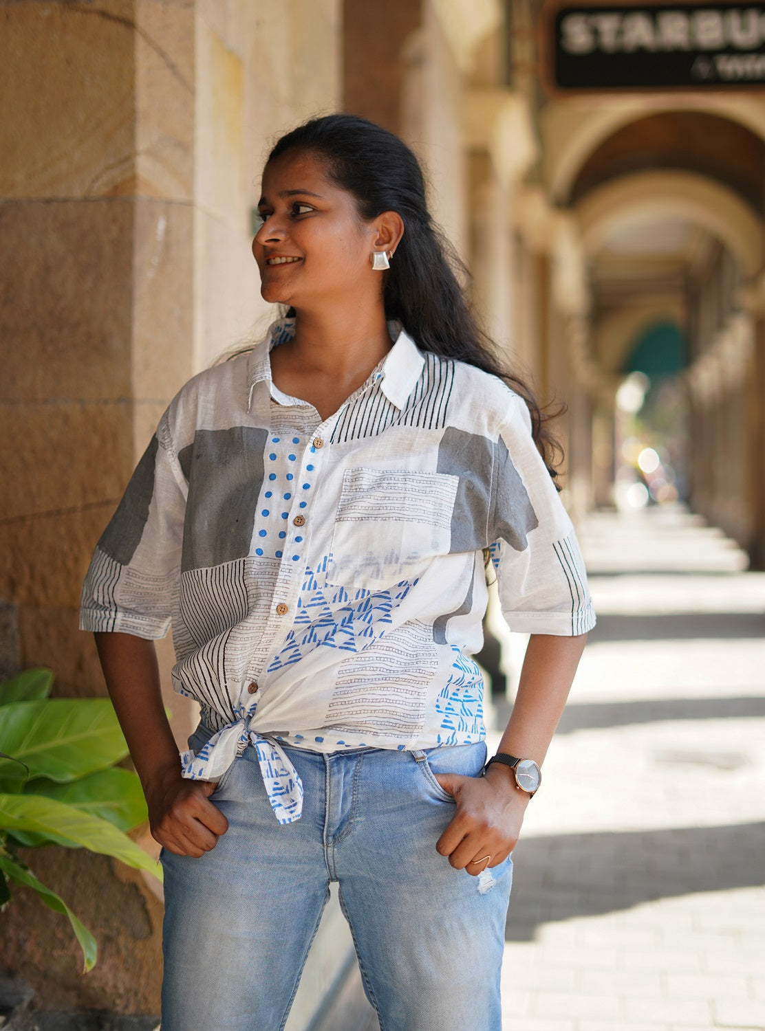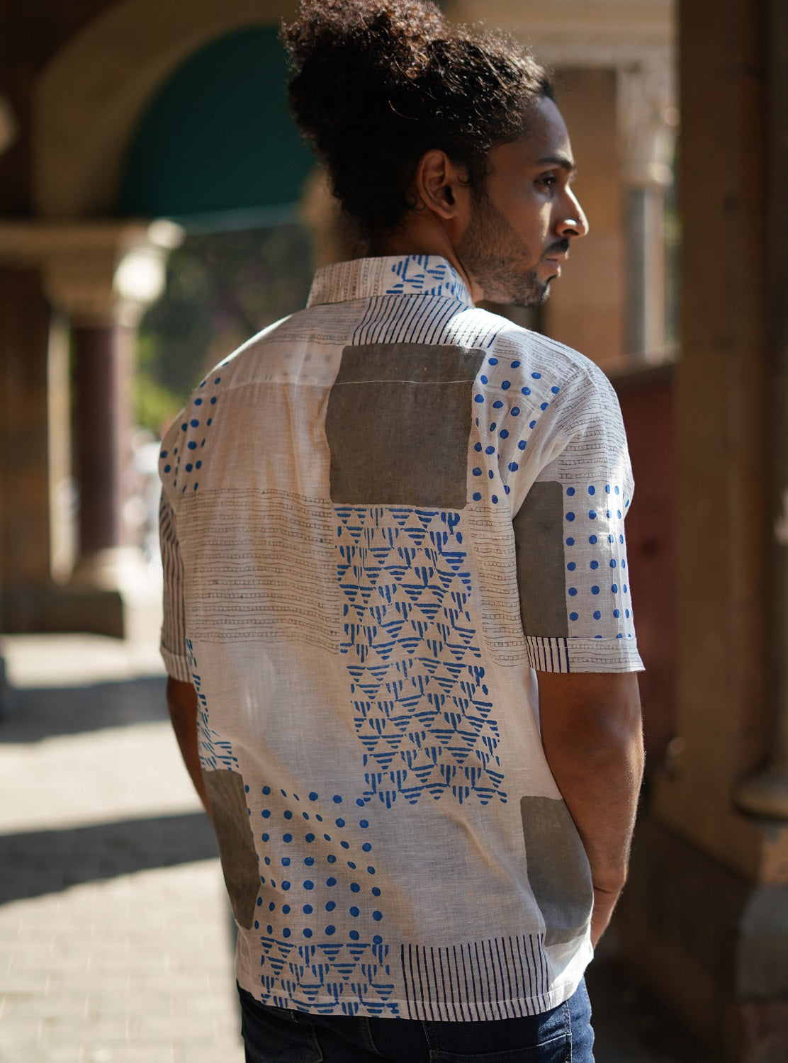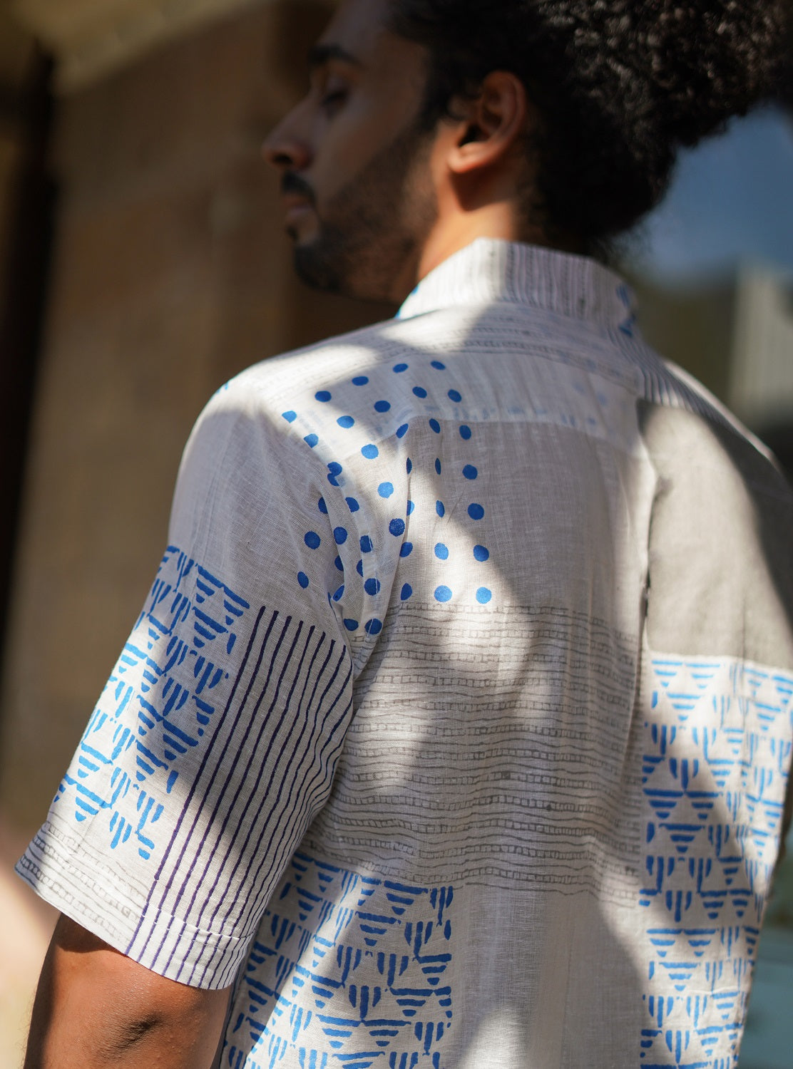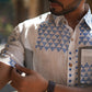 Our White Blockprint Men Shirt is the perfect expression of luxury and sustainability. Crafted from a mix of wood blocks, wooden buttons, and upcycled materials, it exudes an unmistakeable uniqueness that radiates style and passion. Discover the pleasure of wearing something so delicate and one-of-a-kind!